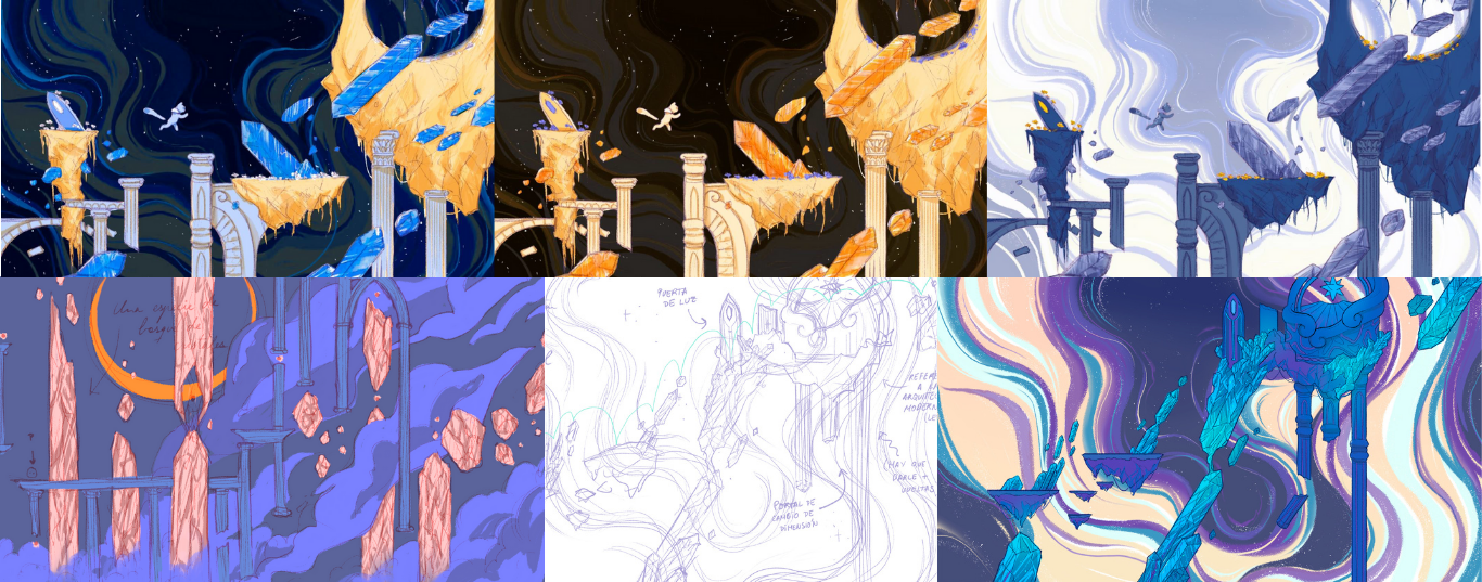 The goal was to end up with a piece that can be used for further development in the future, creating an aesthetic that defines the game's identity, based on a magical world located in remote dimensions.