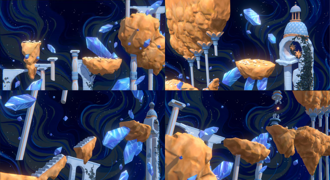 For my Bachelor's Degree Final Project, I created the environment of a 3D graphics level, destined to a platform and adventure video game developed as a team, called QUASAR, alongside four other classmates, considering the possibility of inclusion for an audience with visual difficulties, such as color blindness.
