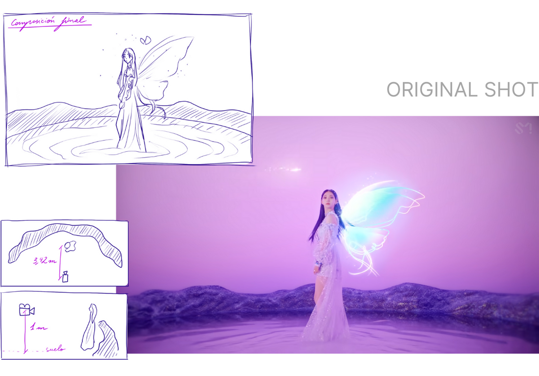This project consists of a remake of a post-production shot, from the shooting to the final effects. The original shot is from Aespa’s Dreams Come True music video, as seen below. In this project I used Photoshop, After Effects and Unity.